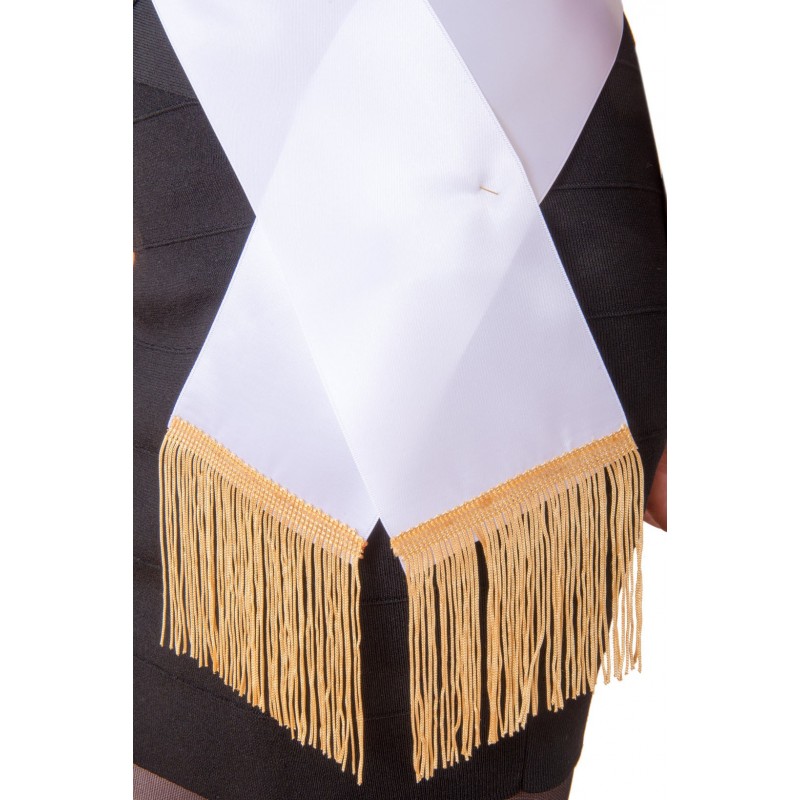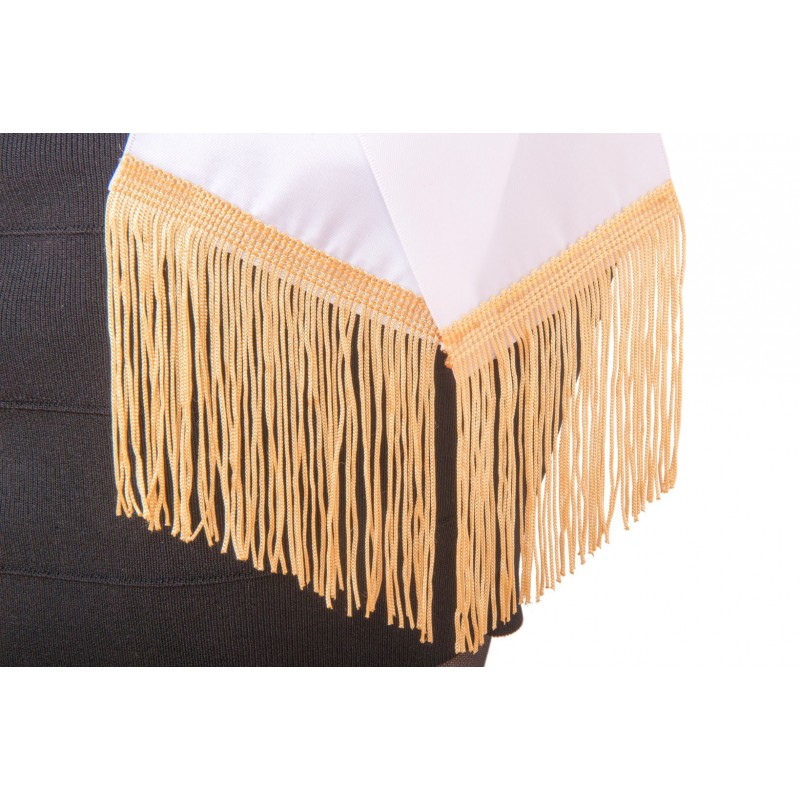 des franges dorées de 10CM de long environ qui vous donneront l'air de porter une veritable écharpe de MISS!